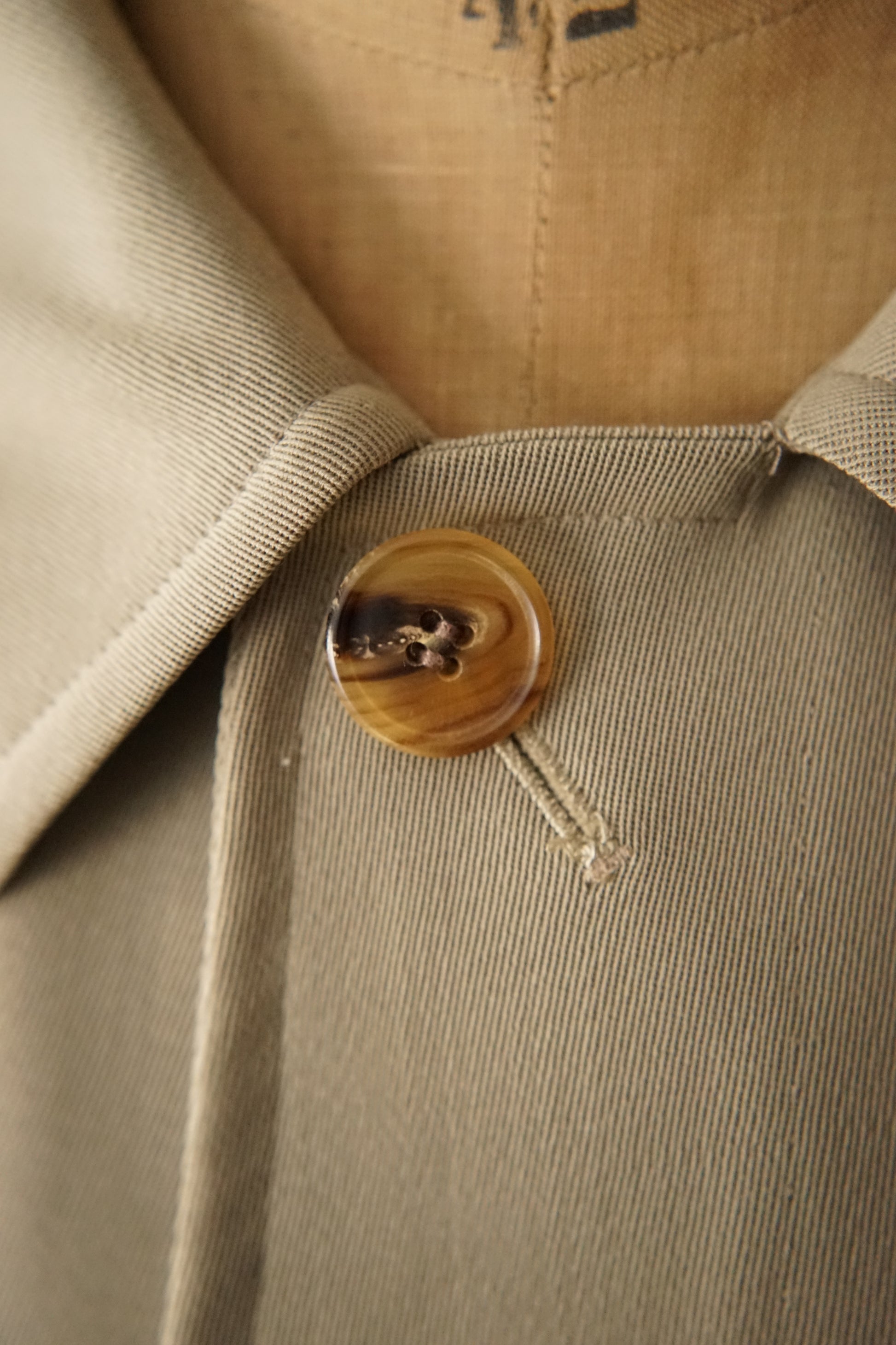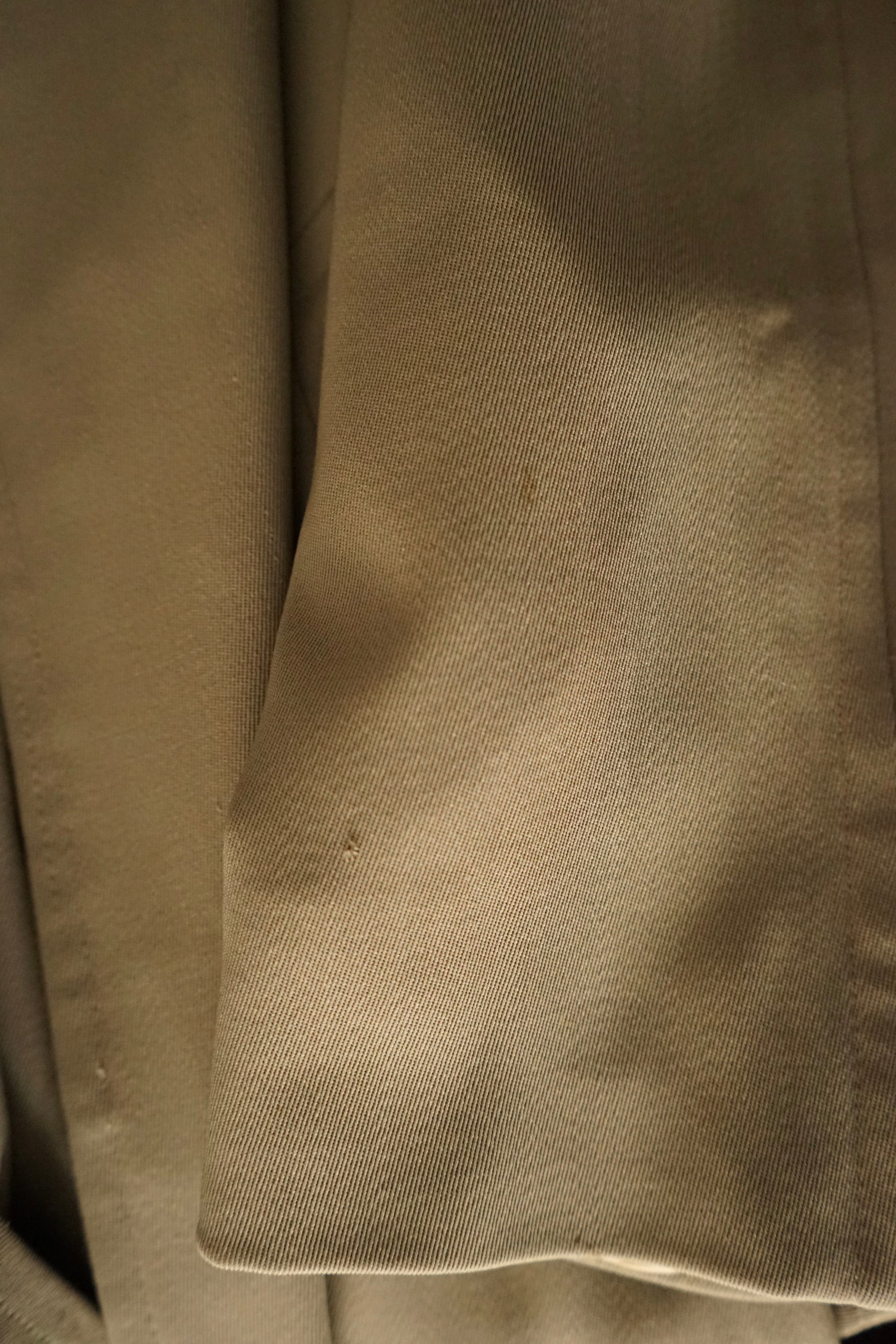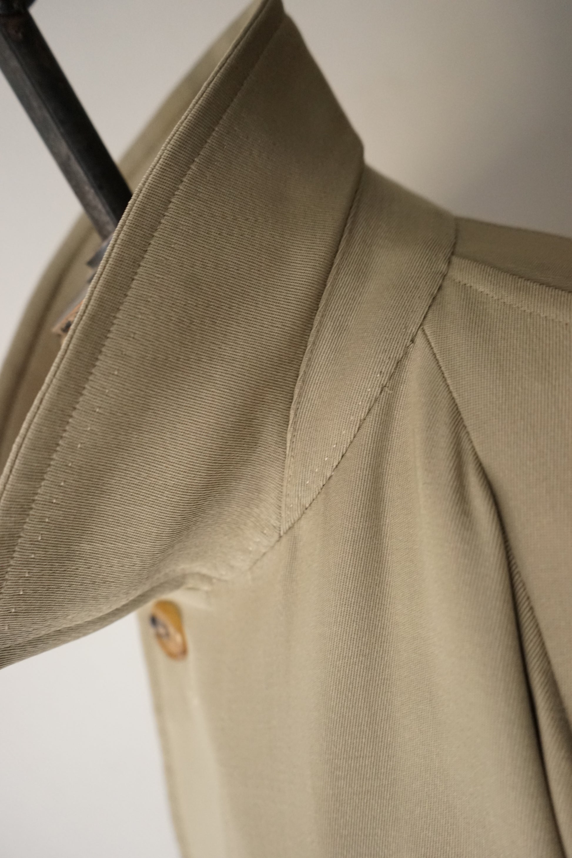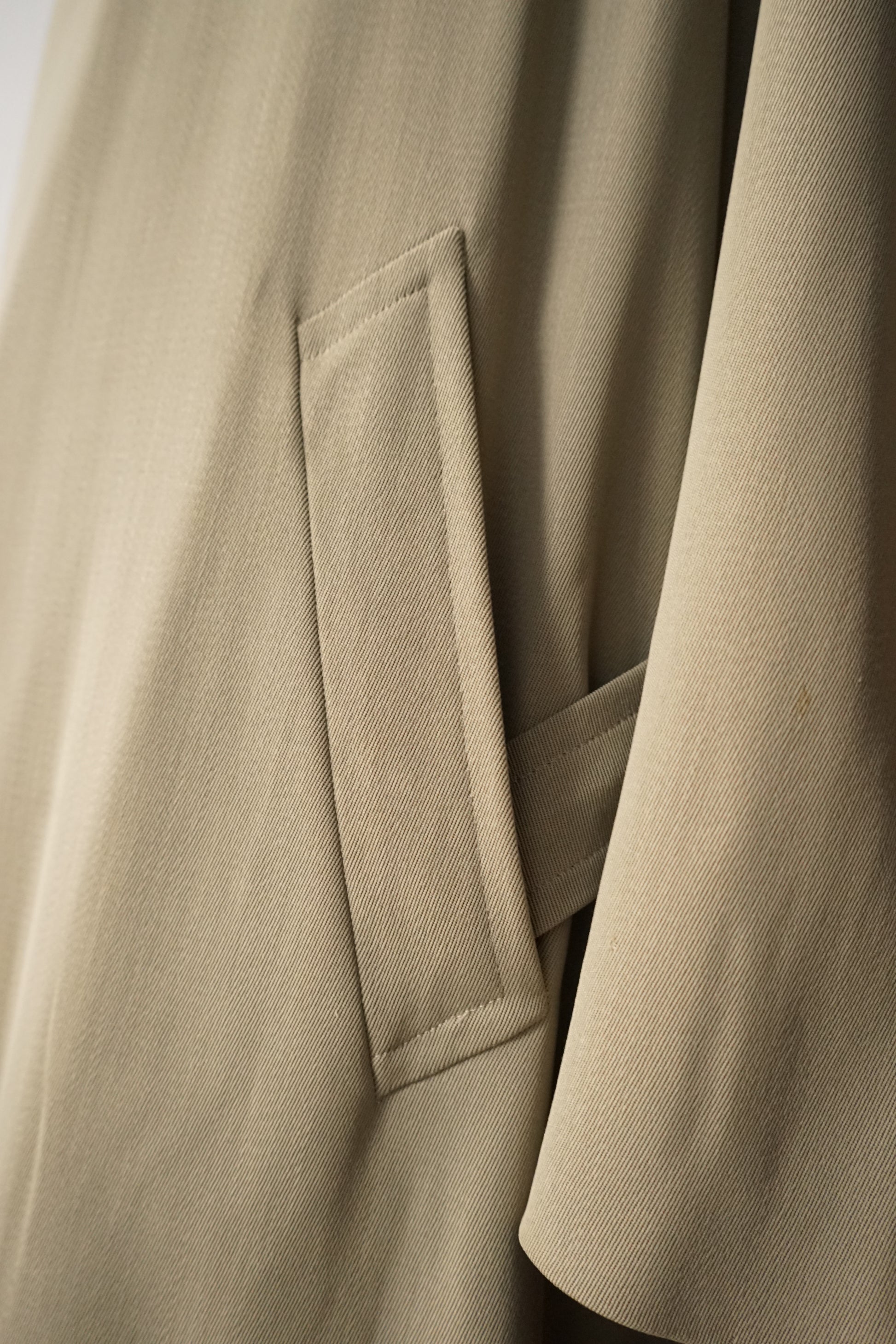 Super 100s のウールギャバジンを使用した、非常に滑らかな生地感が印象的な一着です。