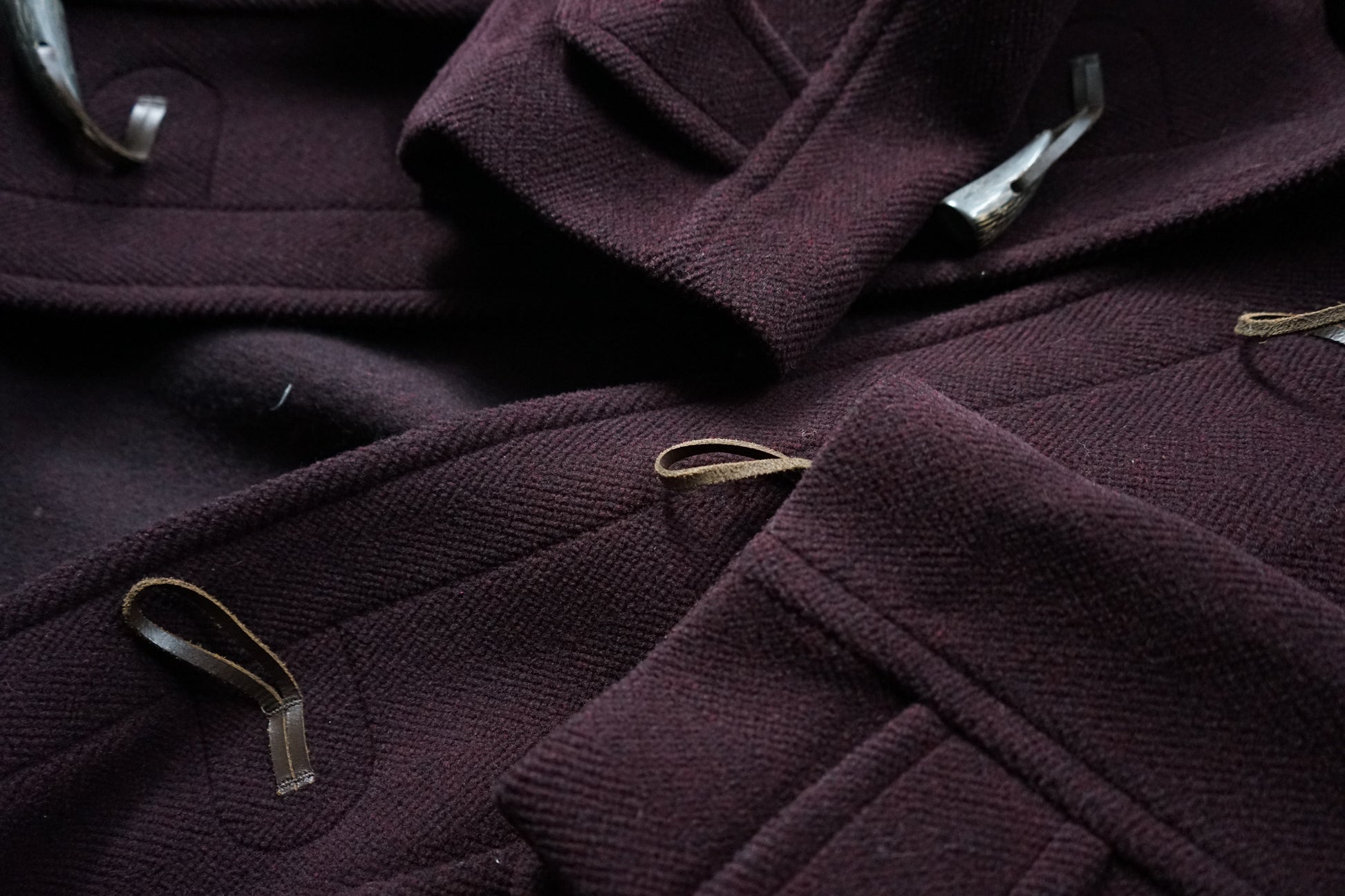 1990s OLD ENGLAND "Burgundy" MoorBrook Fabric Duffel Coat Made in ENGLAND