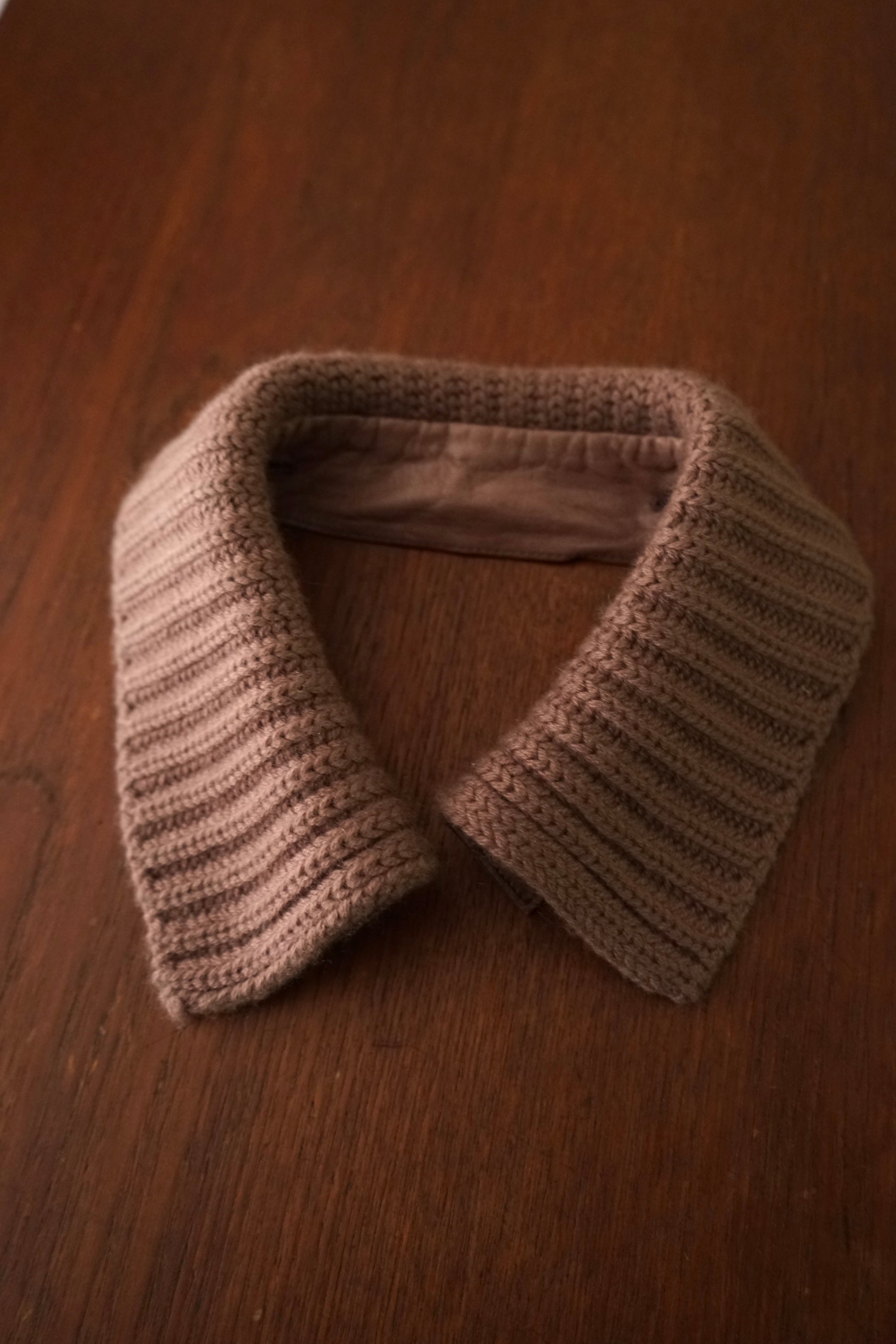 コートの内側には表側がくるような作りになっており、ライニングもつかない仕様のため非常に軽量なことも特徴で、同色のニットの付け襟は着脱可能。