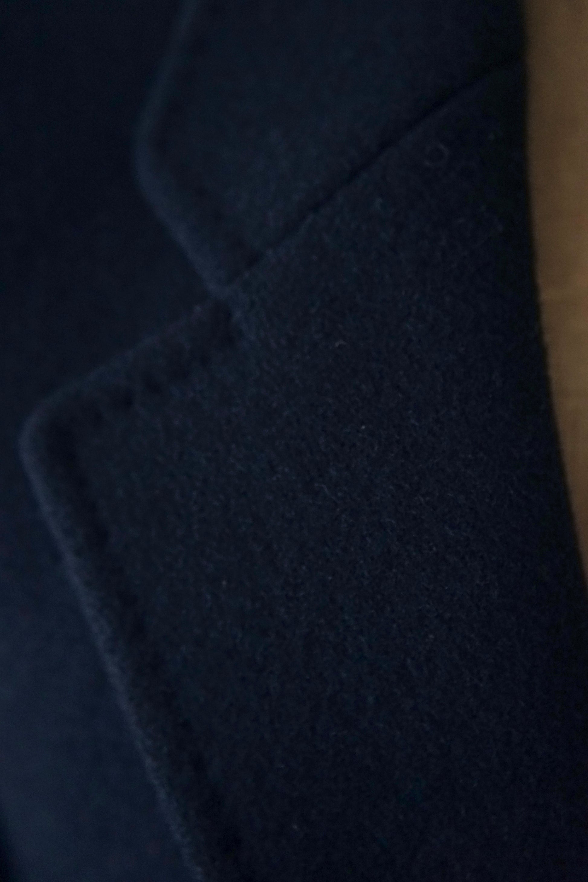 襟裏のホワイトメルトンが、動いたときにさりげないコントラストとして効く一枚。